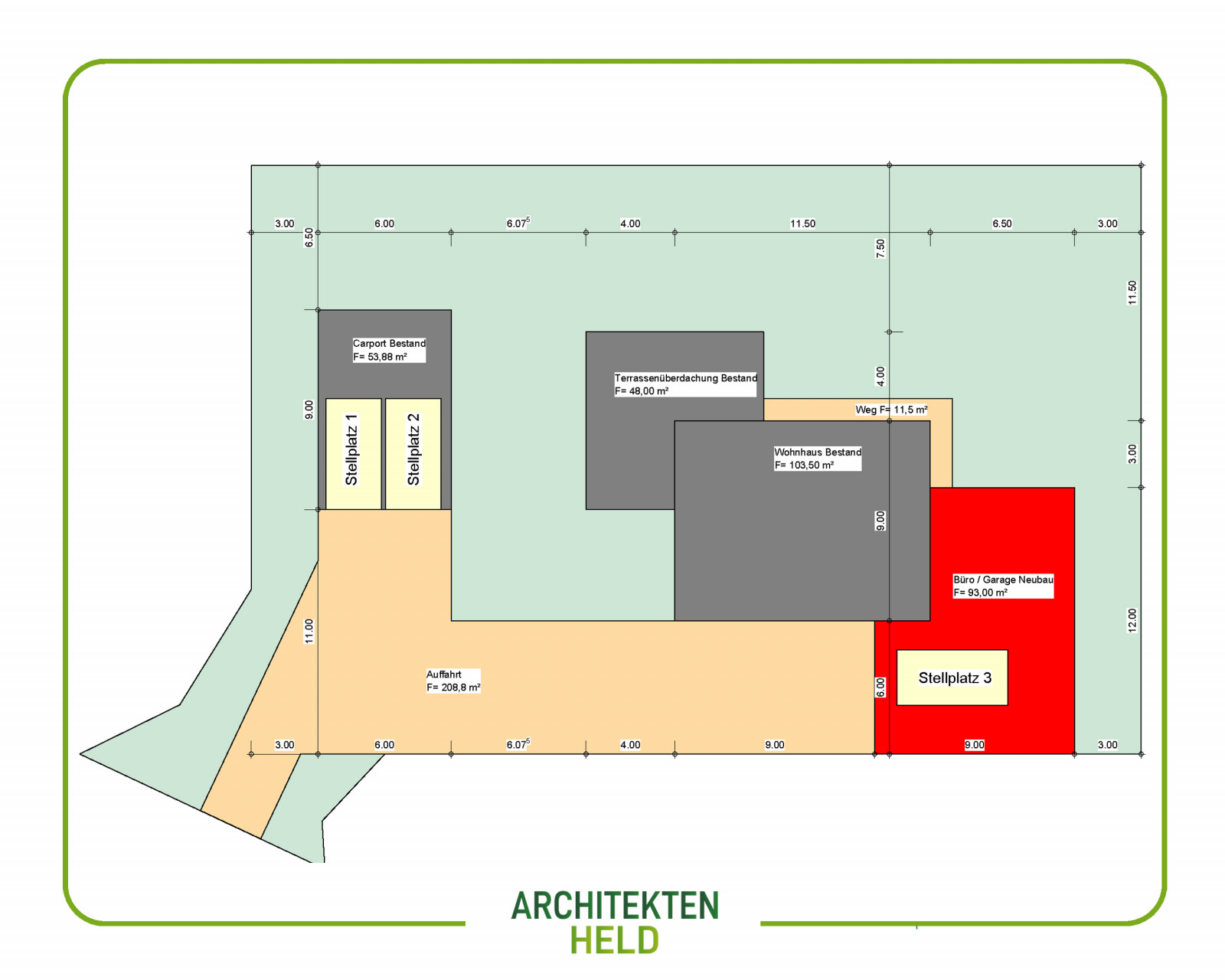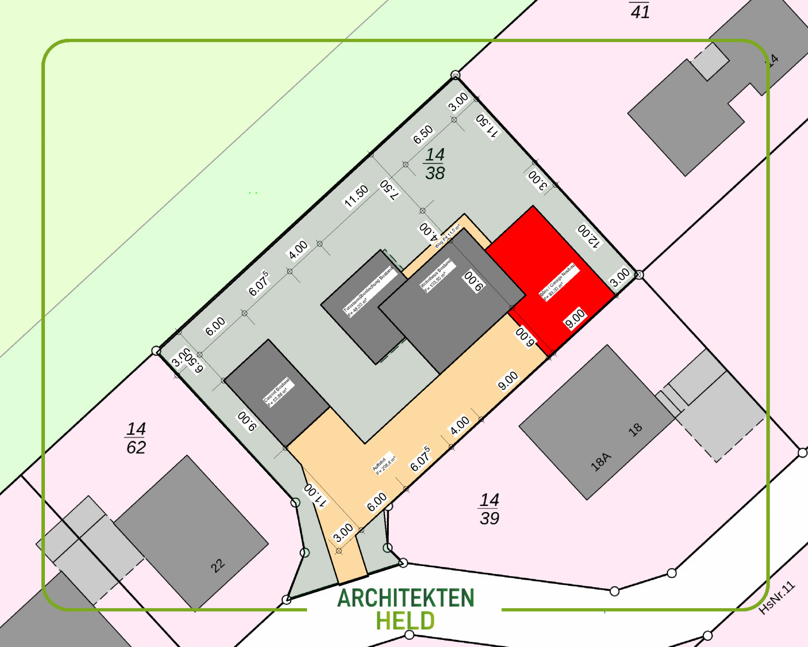 Anbau einer Garage und Büroraum Bauantragsplanung