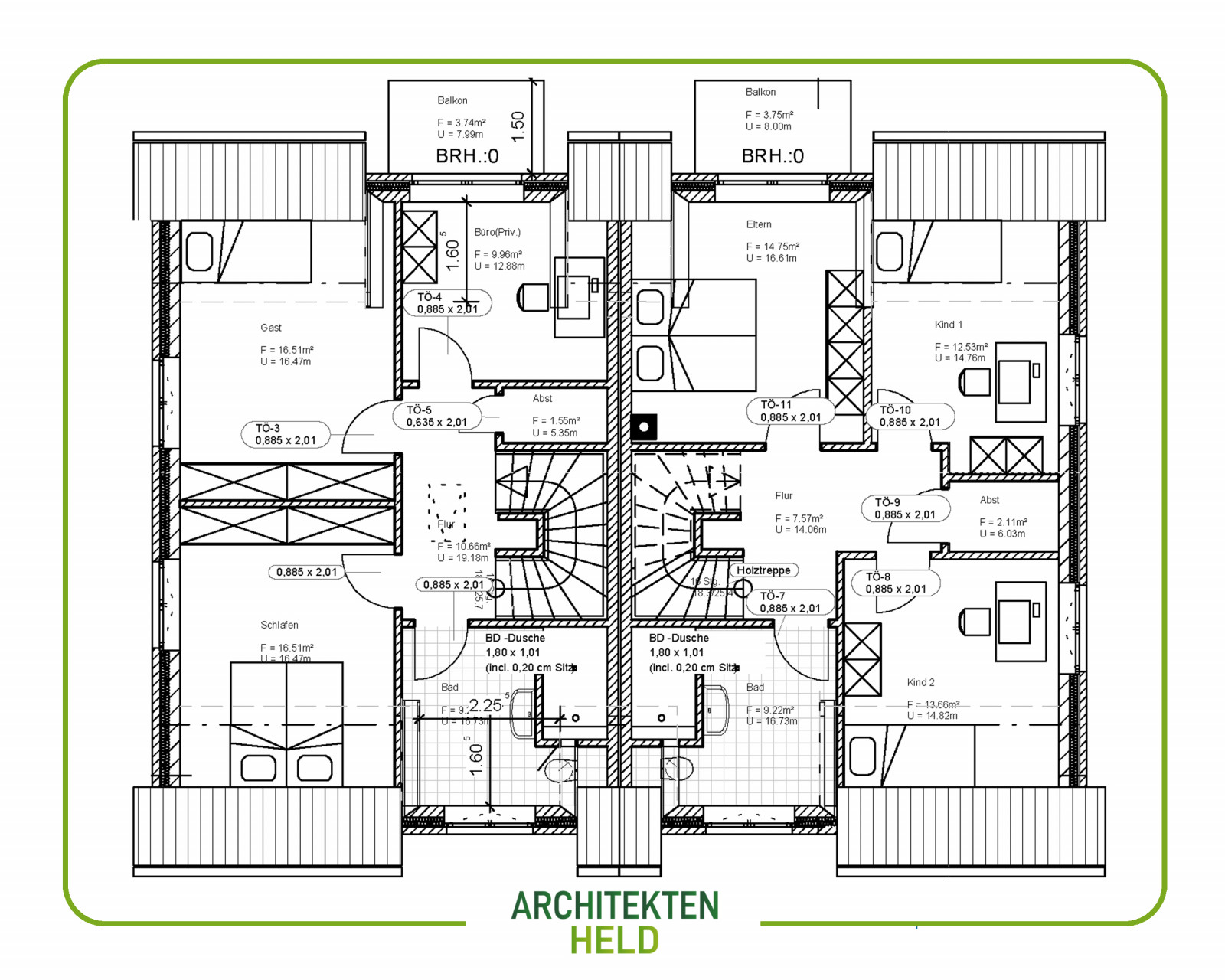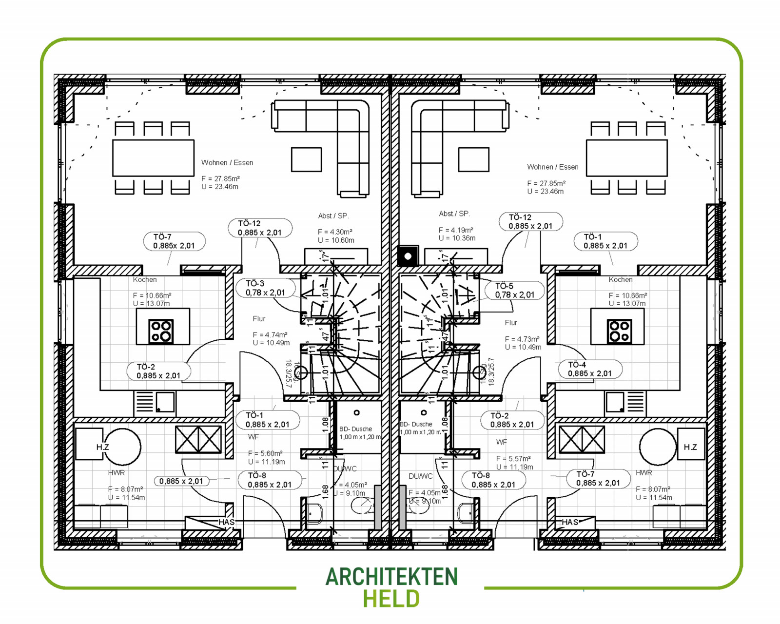 Doppelhaus 115 m² mit Spitzbodenausbau Entwurfsplanung