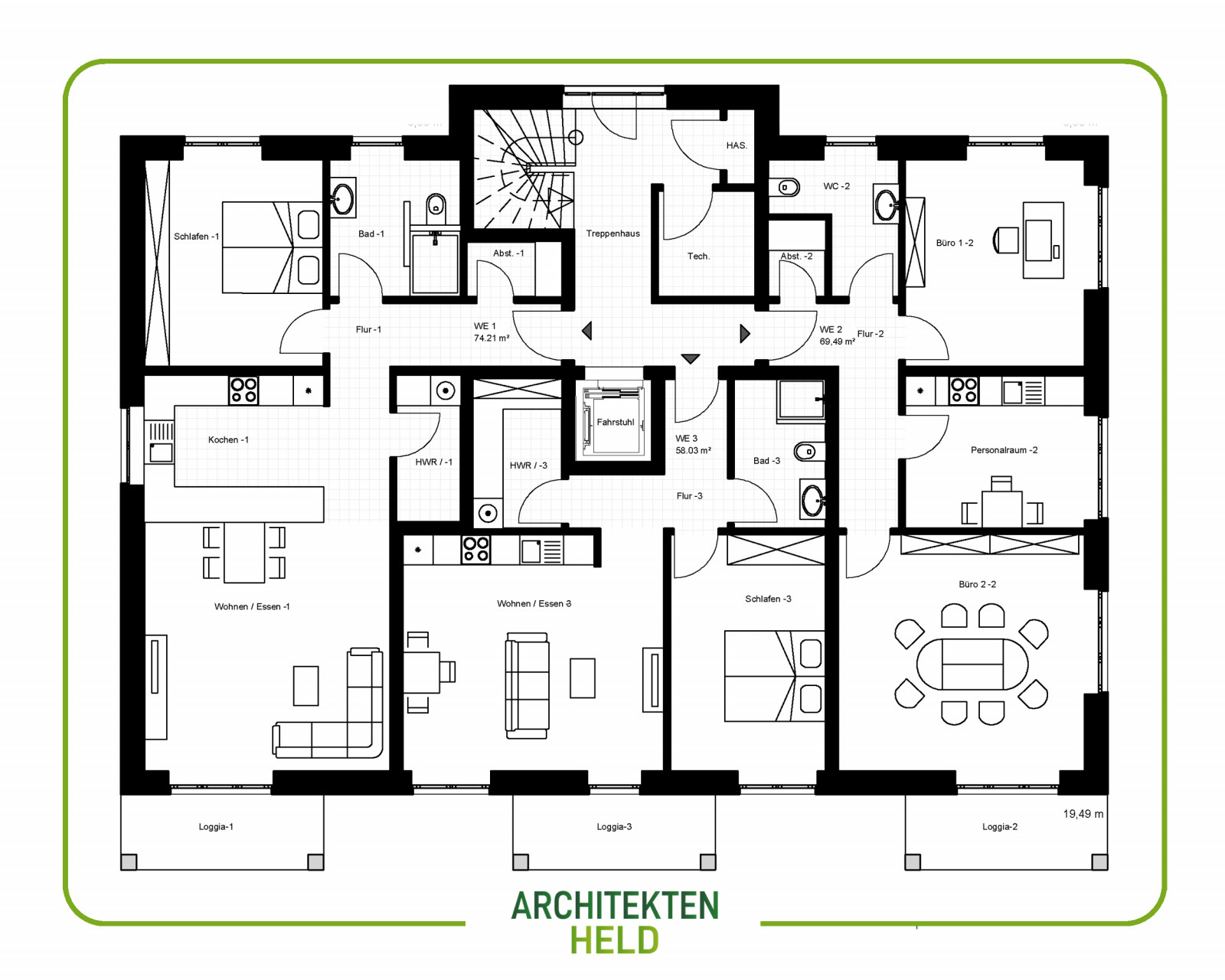 Diesen Mehrfamilienhaus mit 7 Wohneinheiten haben wir auf Kundenwunsch und grundstücksoptimiert angefertigt.