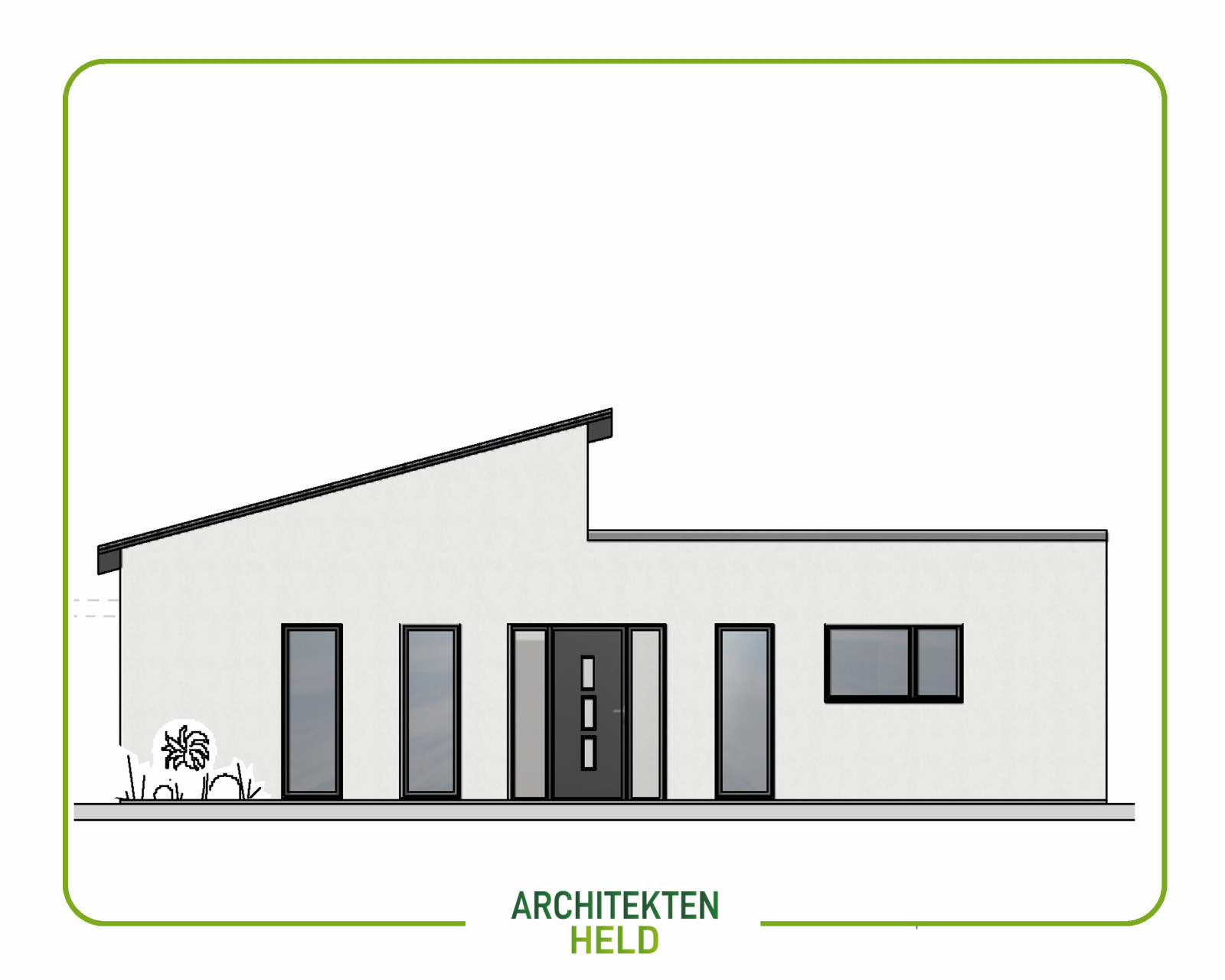 Winkelbungalow 126 m² mit Pultdach Entwurfsplanung