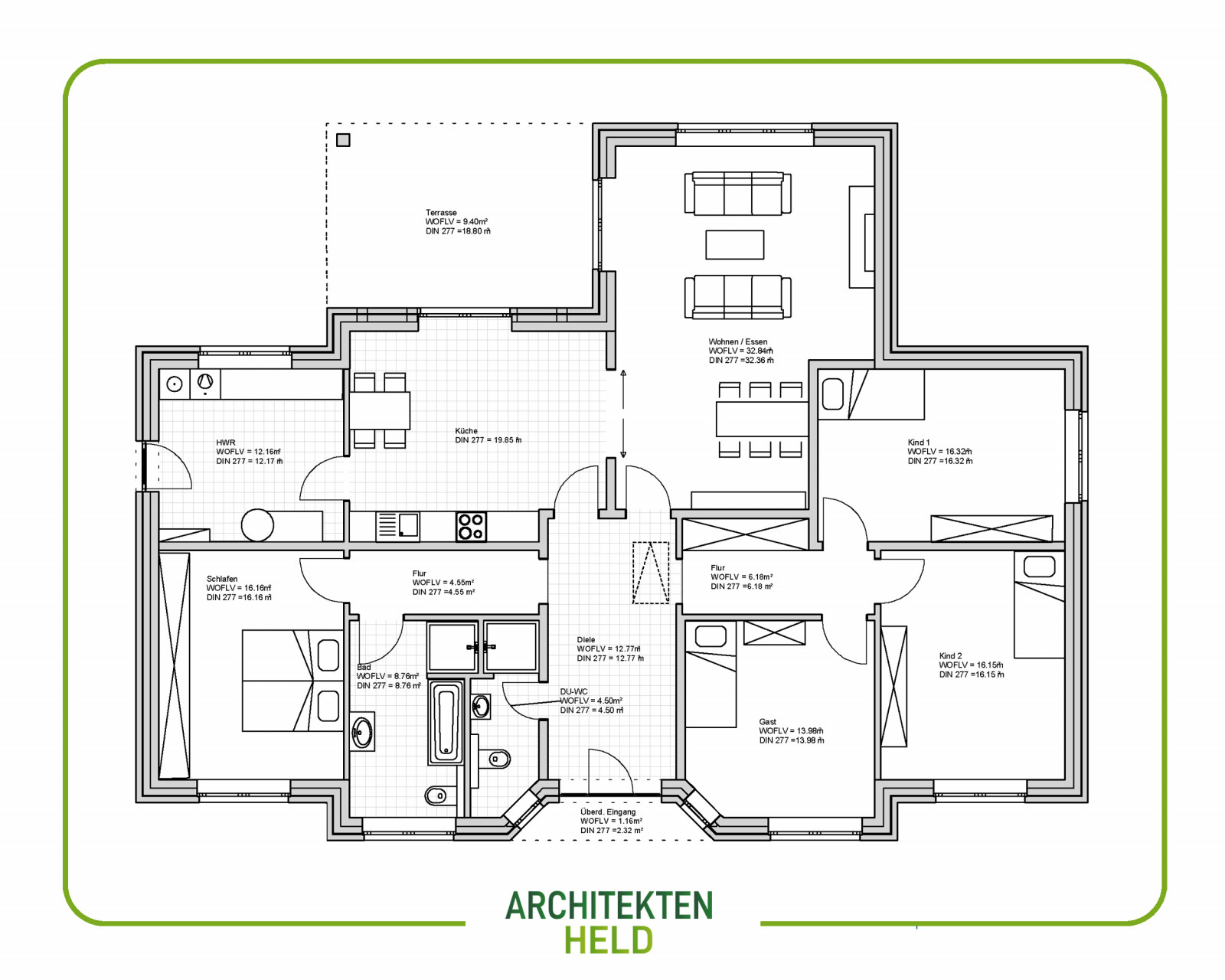 Winkelbungalow 176 m² Entwurfsplanung